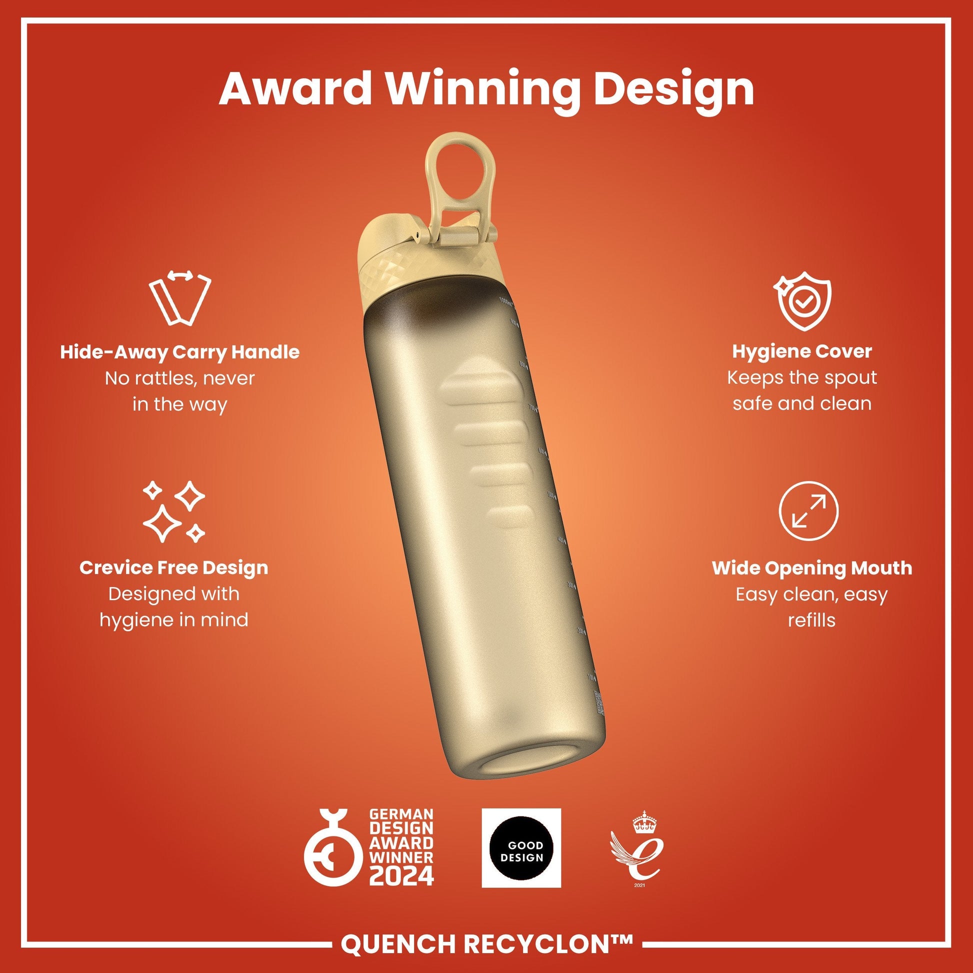 Leak Proof 1 litre Water Bottle, Recyclon, Desert, 1L