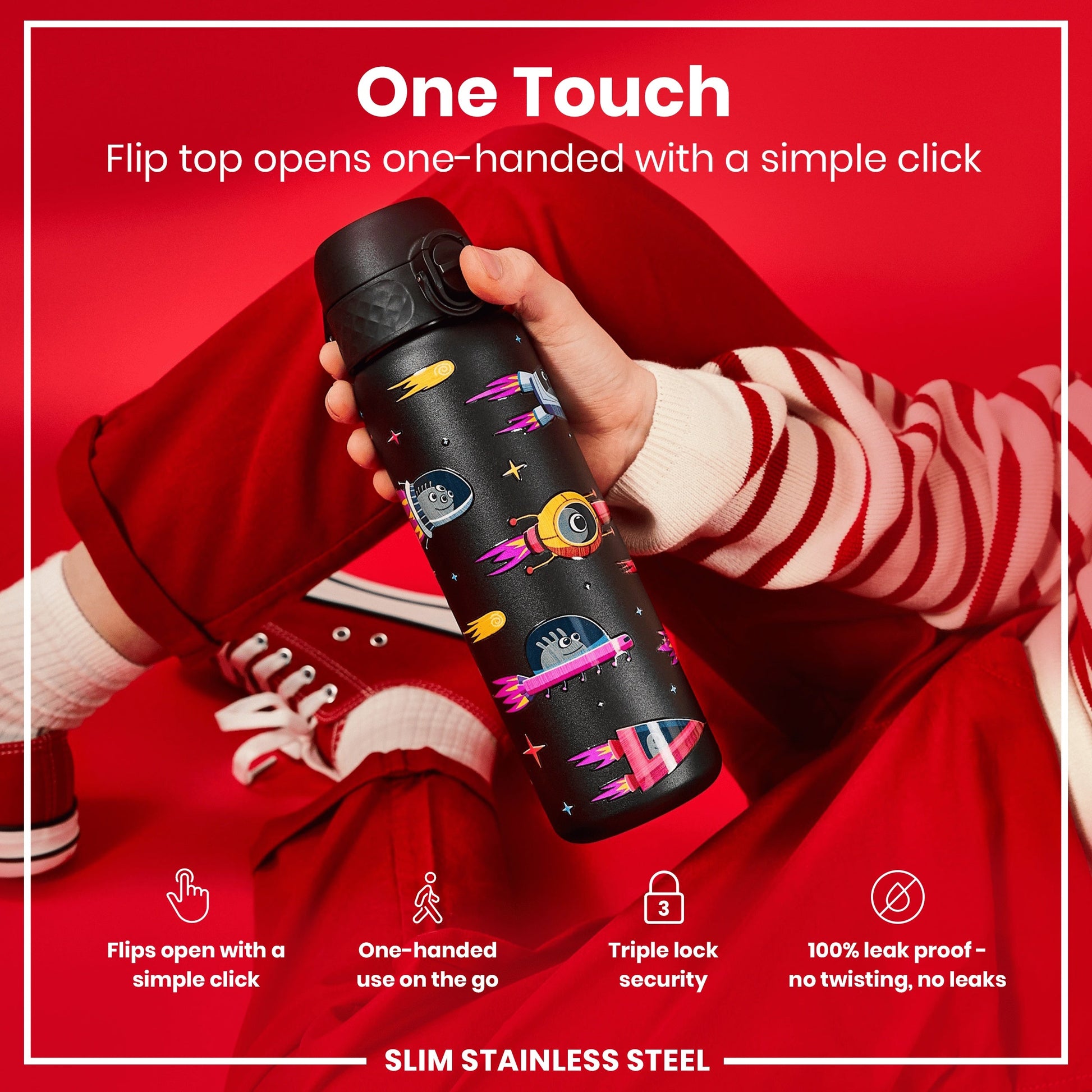 Leak Proof Slim Water Bottle, Stainless Steel, Spaceships, 600ml (20oz)