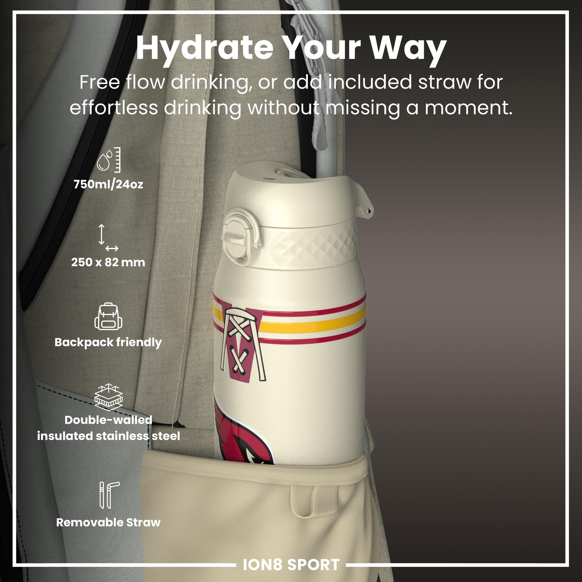NFL x ION8 Insulated Steel Water Bottle, NFL Cardinals, 750ml (24oz)