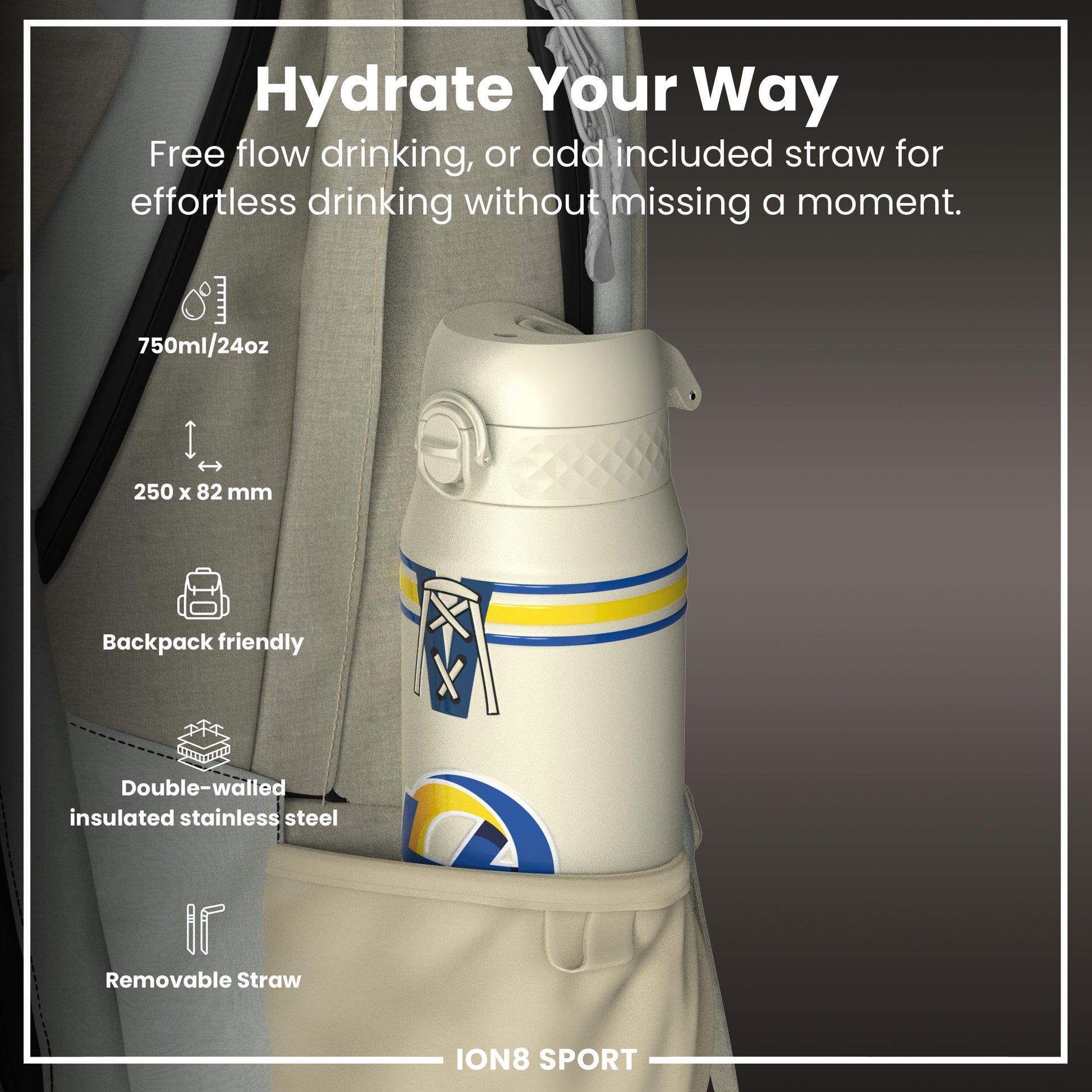 NFL x ION8 Insulated Steel Water Bottle, NFL Rams, 750ml (24oz)